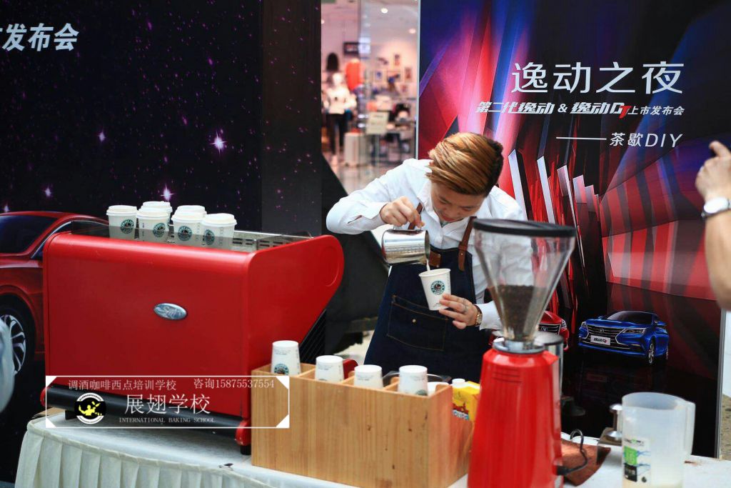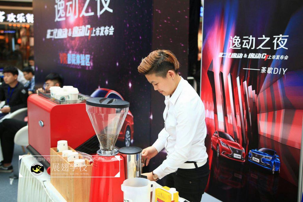 2018年3月27日,佛山展翅調(diào)酒咖啡西點(diǎn)培訓(xùn)學(xué)校的咖啡學(xué)員受邀參加逸動之夜廣東站發(fā)布會。在現(xiàn)場的茶歇DIY環(huán)節(jié),我們的咖啡師給現(xiàn)場的觀眾沖調(diào)咖啡飲料,并現(xiàn)場教學(xué)如何拉花,讓感興趣的朋友也可以體驗(yàn)到咖啡的魅力和樂趣。